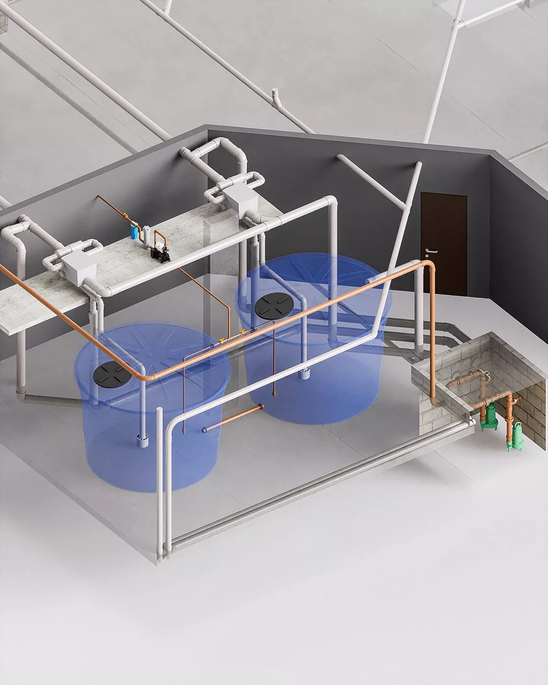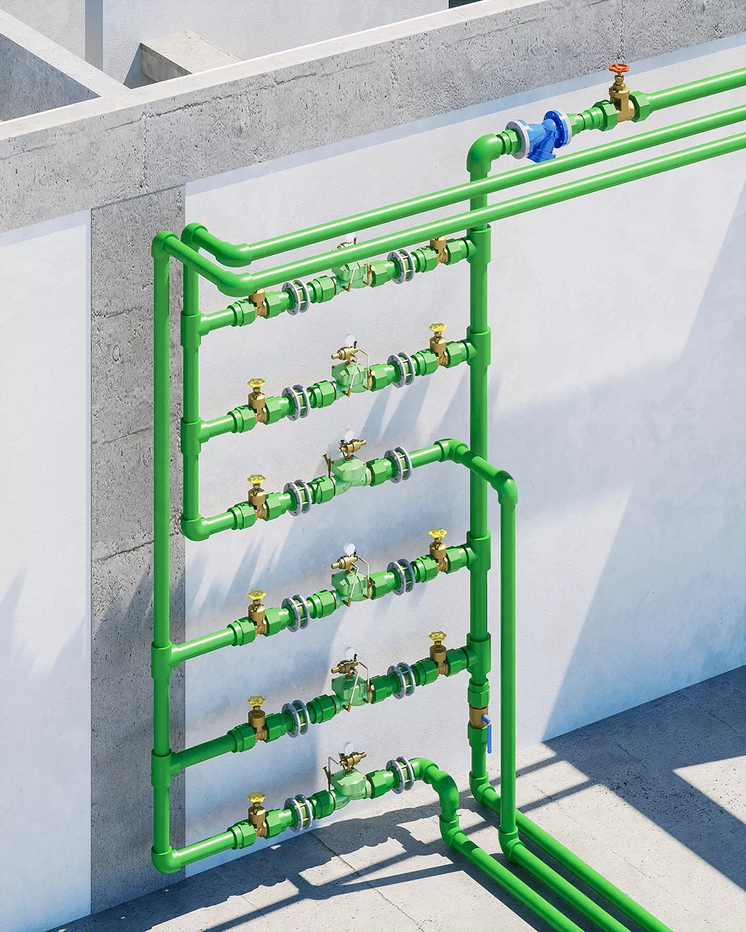 De acordo com a ABNT NBR 5.626 iremos aprofundar em diversos tópicos: reservatório inferior e superior, barrilete, coluna de distribuição, ramais, sub-ramais, zonas de pressão, estações redutoras (VRP's), sistema de bomba de recalque, pressurização de alta vazão, centro de medição individual e tantos outros.