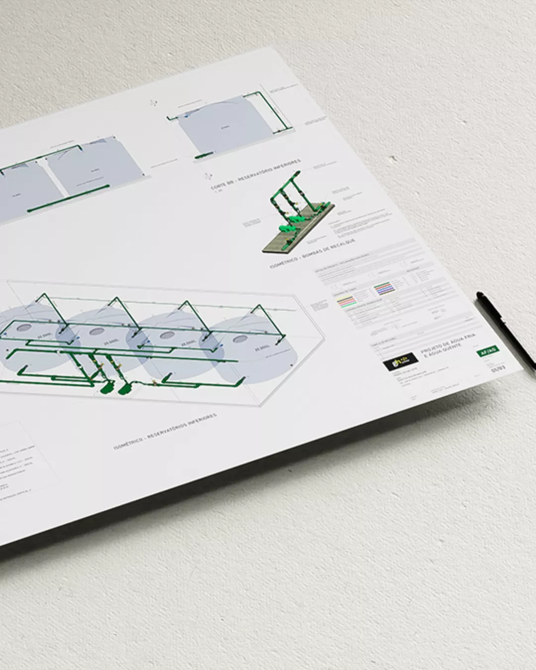 Hora de encantar o cliente. Tudo o que aprendemos precisa ser bem detalhado, por isso desenvolvemos: detalhamento das plantas baixas, isométricos, ampliações, vistas frontais, esquema vertical, além de tantos outros detalhes de regiões importantes do nosso projeto hidrossanitário.