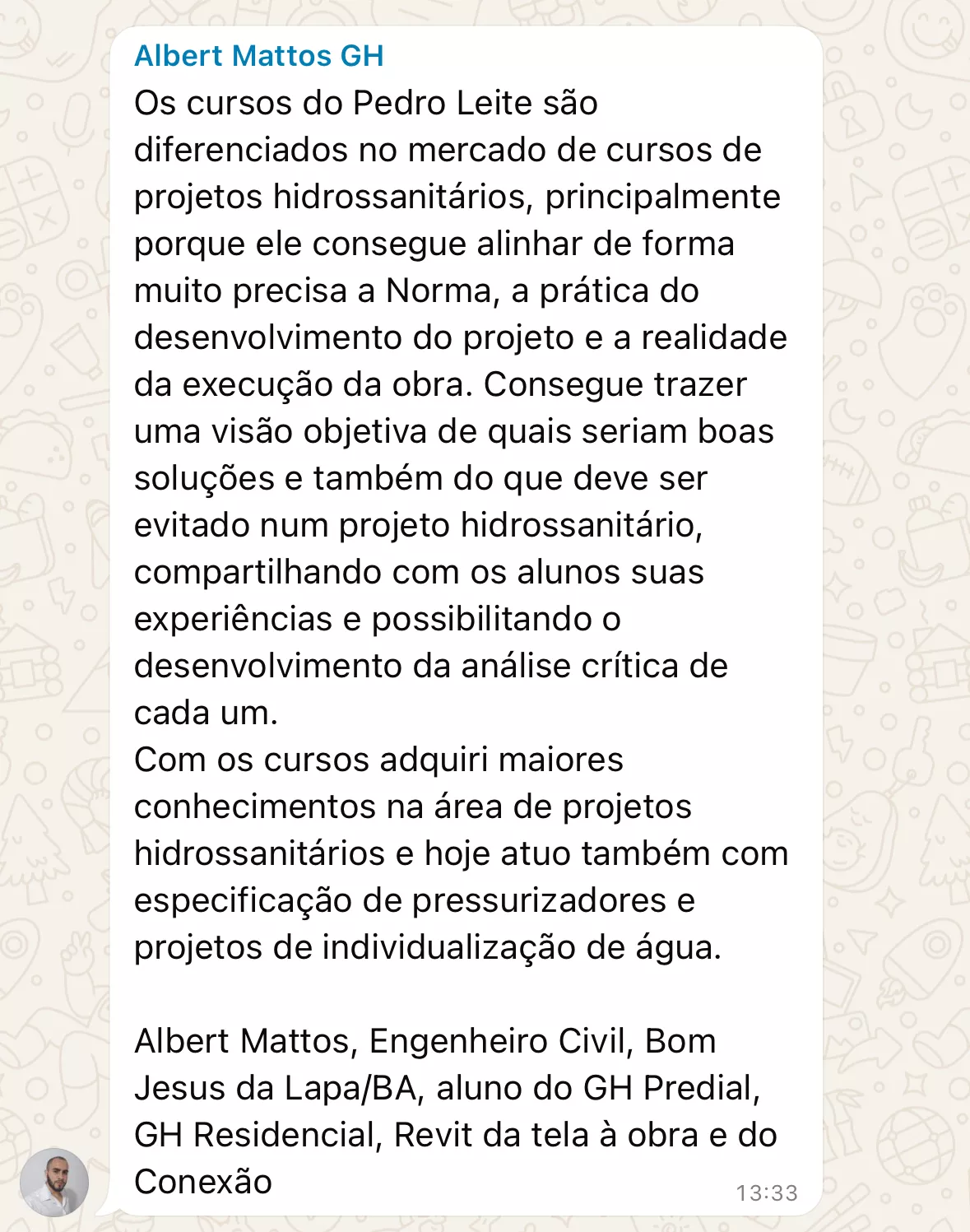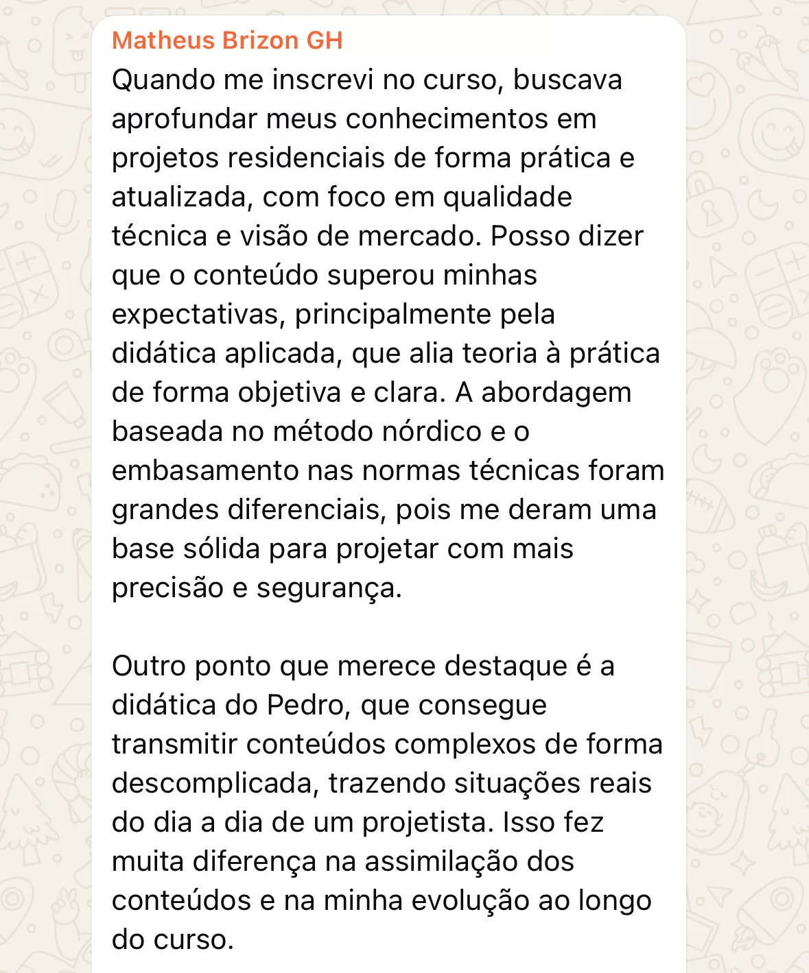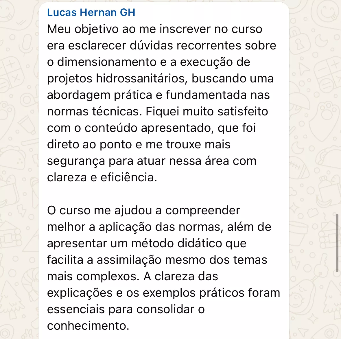 Ou seja, o Método NORDICO é estruturado para formar um gestor hidrossanitário completo . Alunos já comprovaram que além de te capacitar com as ferramentas BIM, o método traz segurança para dimensionar as redes, executar com segurança as normas e passar autoridade para seus clientes ou entrevistadores.