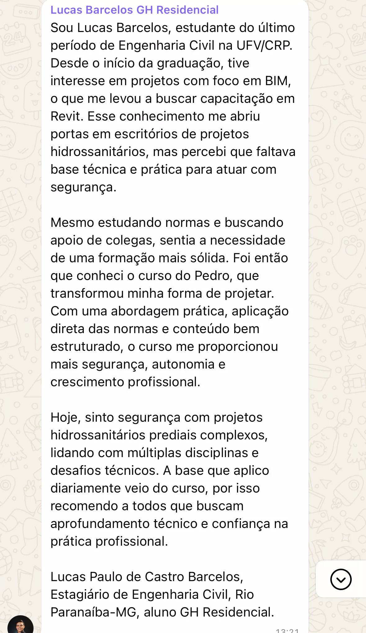 Aulas ministradas pelo Eng. Pedro Leite, com modelagem completa, decisões reais de projeto e sem cortes.